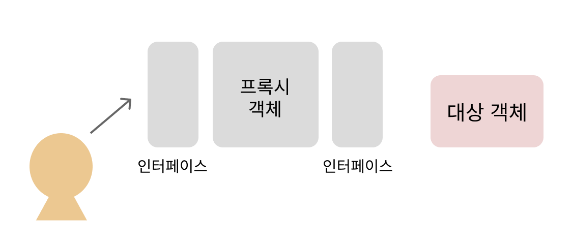 대상 객체에 접근하기 전 그 접근에 대한 흐름을 가로채 대상 객체 앞단의 인터페이스 역할을 하는 디자인 패턴