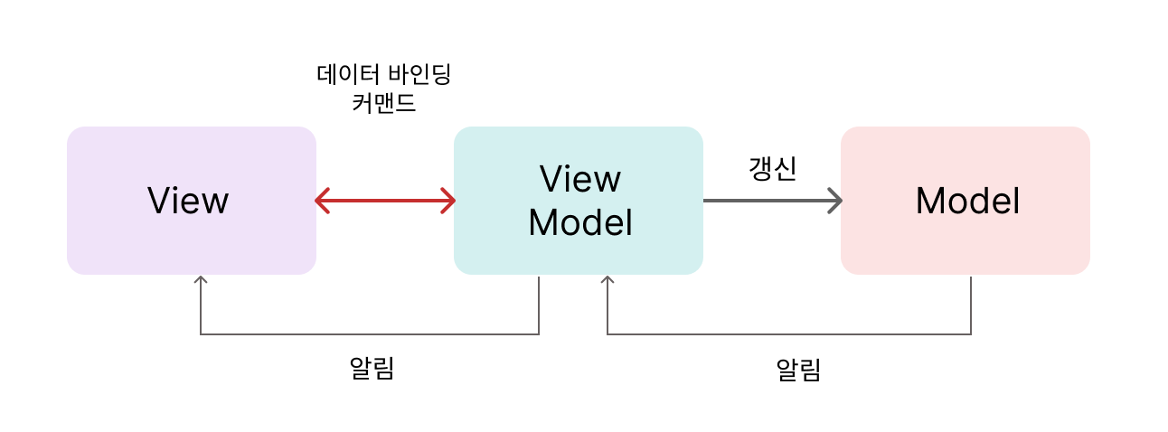 Model (모델) | View (뷰) | View Model (뷰 모델) 로 이루어진 디자인 패턴