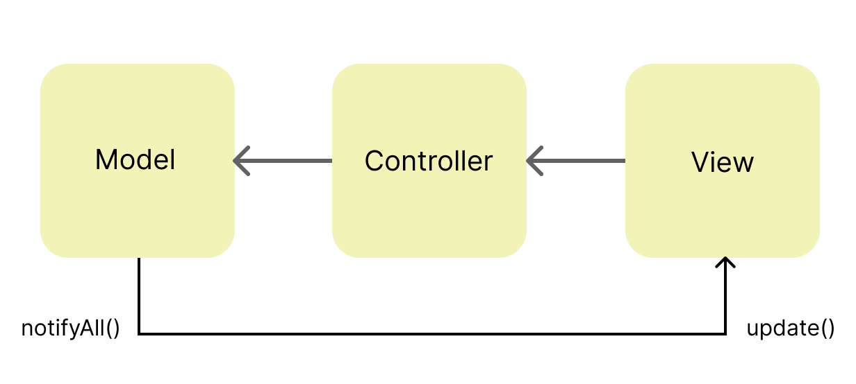 위의 사진을 예시로 들면, 주체라고 볼 수 있는 모델에 변경 사항이 생겨 update() 메서드로 옵저버인 뷰에