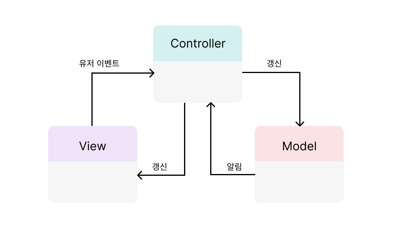 모델과 뷰의 생명주기도 관리하고, 모델이나 뷰의 변경 통지를 받으면 이를 해석해서 각각의 구성 요소에 해당